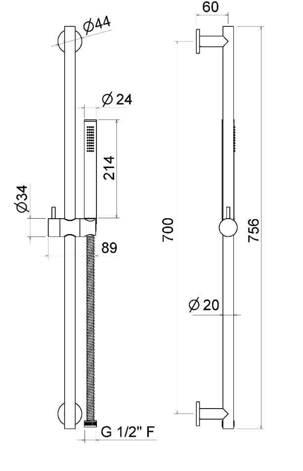 ASTA SALISCENDI DOCCIA VEMA ACCIAIO V17101