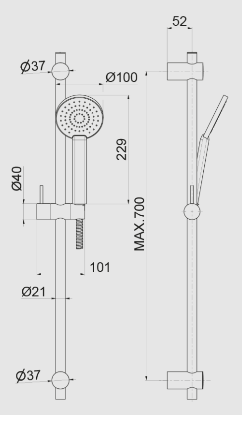 Asta saliscendi completa di doccia e flessibile
