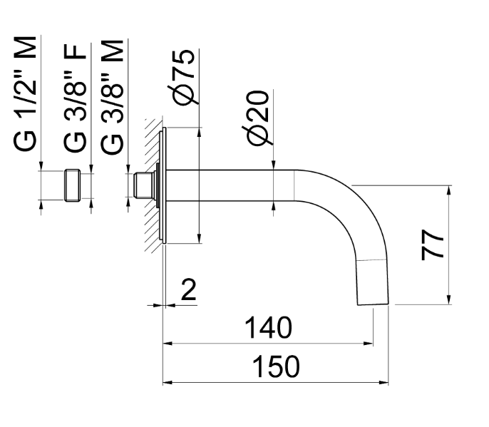 BOCCA DI EROGAZIONE A PARETE LAVABO VEMA MAIRA OTTONE V27054