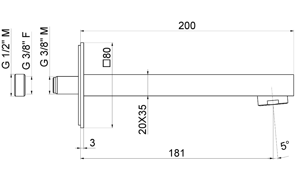 BOCCA DI EROGAZIONE A PARETE VASCA VEMA LYS OTTONE V25145