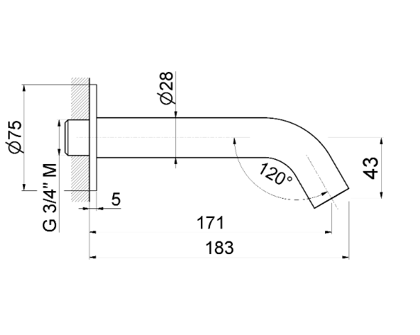 BOCCA EROGAZIONE A PARETE PER GRUPPO VASCA L. 17,1 CM VEMA OTAGO ACCIAIO V17145