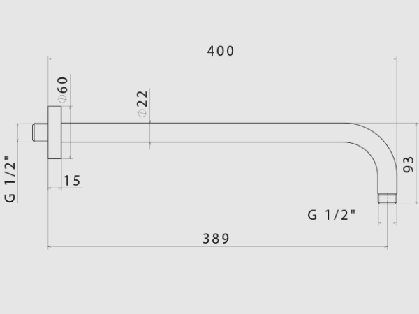 BRACCIO SOFFIONE A PARETE L. 400 mm VEMA WELLNESS STEEL ACCIAIO V08253