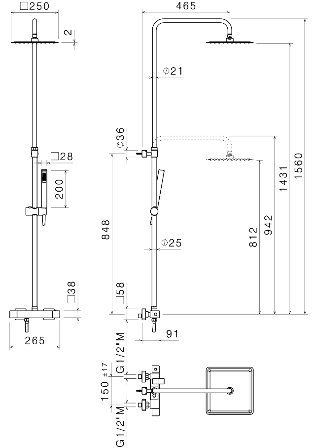 COLONNA DOCCIA DA PARETE CON MISCELATORE TERMOSTATICO VEMA WELLNESS BRASS OTTONE V08231