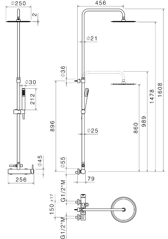 COLONNA DOCCIA DA PARETE CON SOFFIONE TONDO VEMA WELLNESS BRASS OTTONE V08228