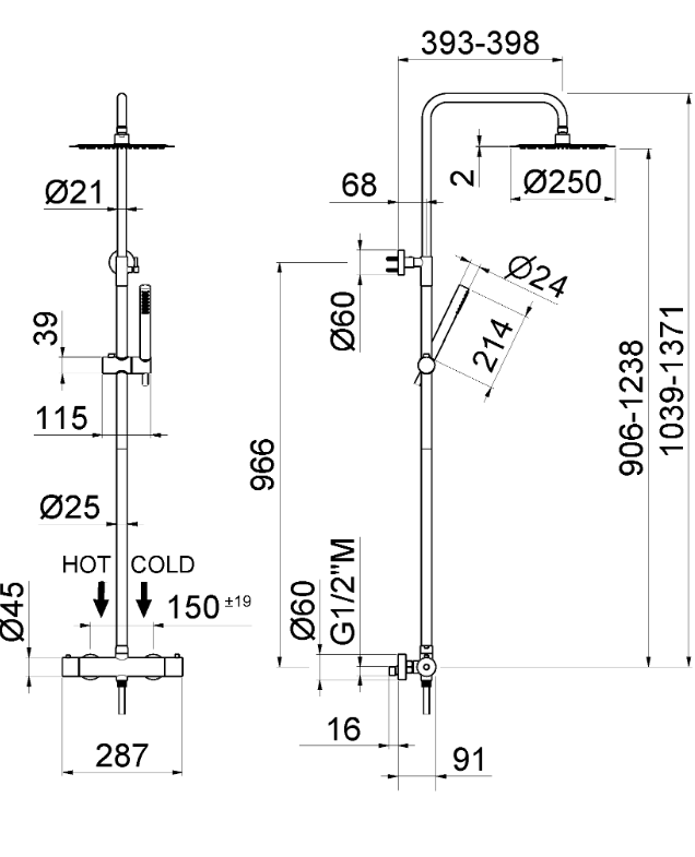 COLONNA DOCCIA DA PARETE CON SOFFIONE VEMA WELLNESS STEEL ACCIAIO V08237
