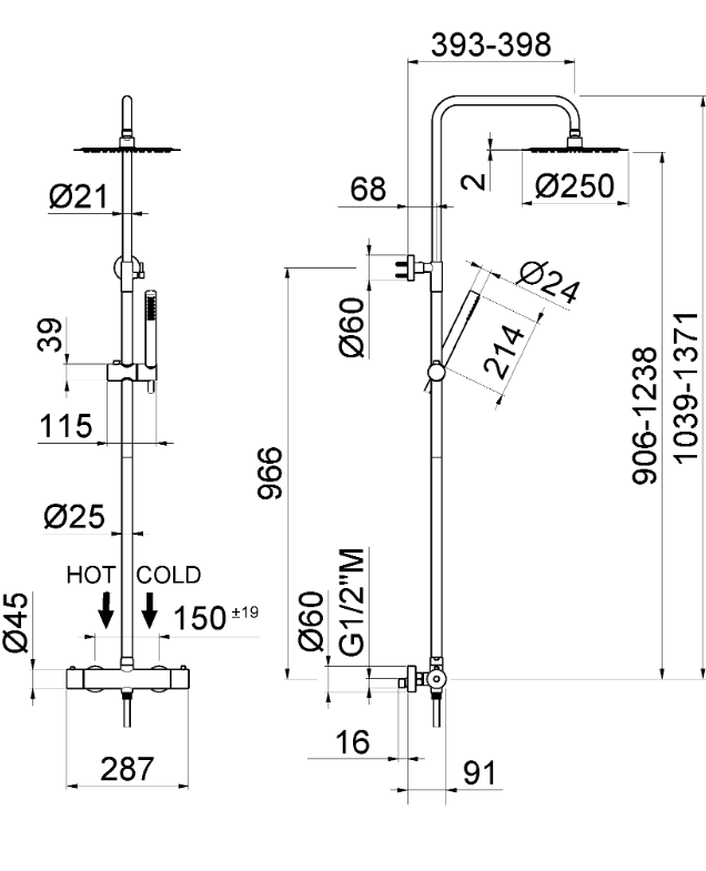 COLONNA DOCCIA DA PARETE TERMOSTATICO VEMA WELLNESS STEEL ACCIAIO V08233