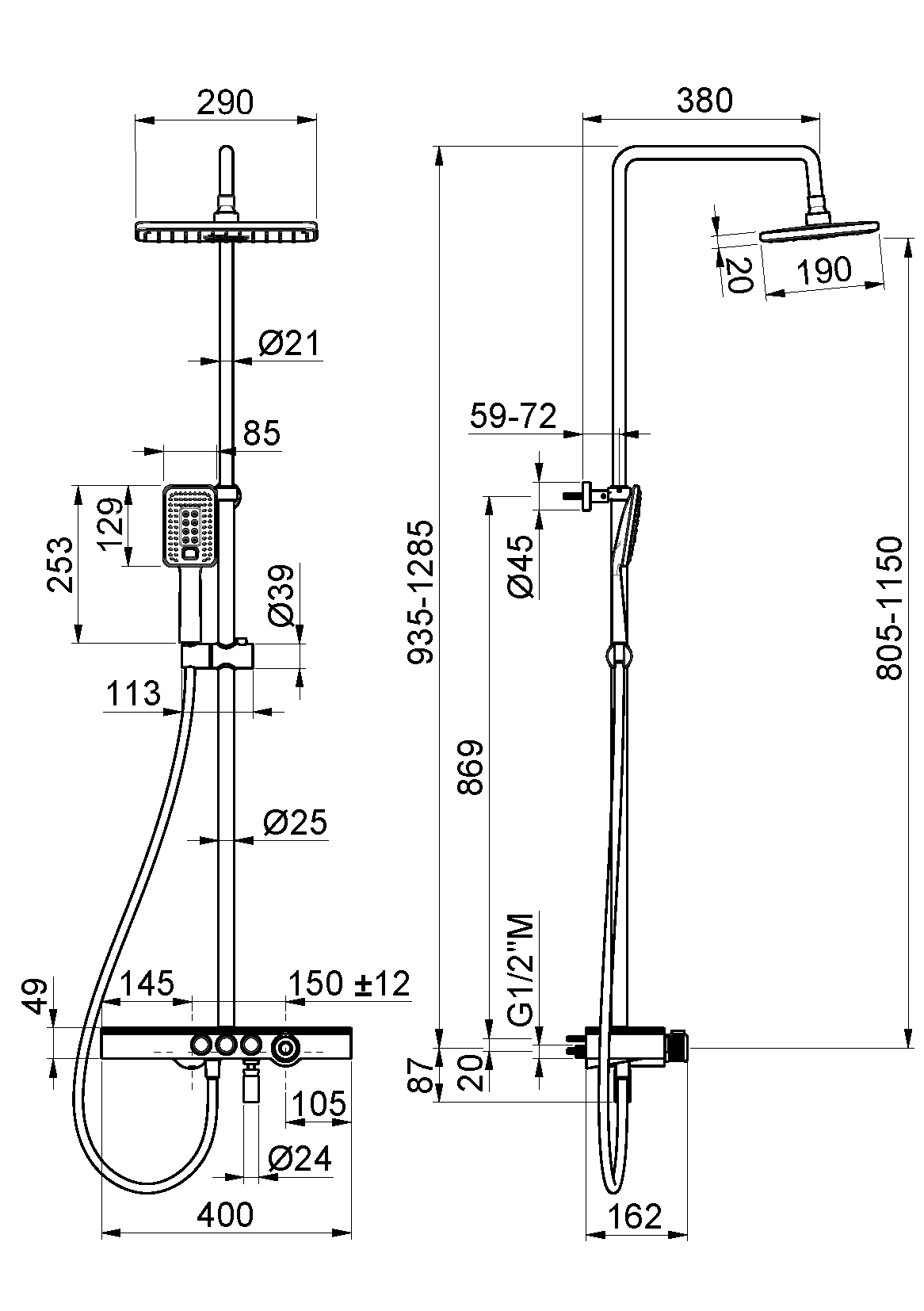 COLONNA DOCCIA DA PARETE CON MISCELATORE TERMOSTATICO VEMA WELLNESS BRASS OTTONE V08232