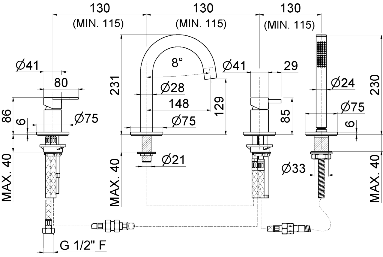 GRUPPO BORDO VASCA CON DEVIATORE VEMA AYAS STEEL ACCIAIO V28150