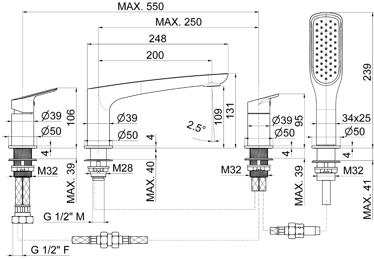 GRUPPO BORDO VASCA CON DEVIATORE VEMA OTEN OTTONE V30150