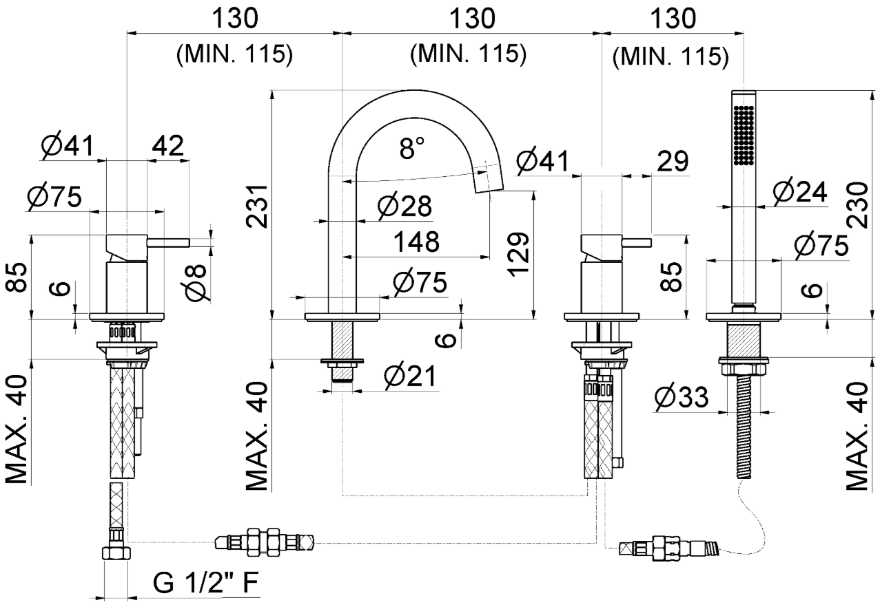 GRUPPO BORDO VASCA CON DEVIATORE VEMA TIBER STEEL ACCIAIO V17150