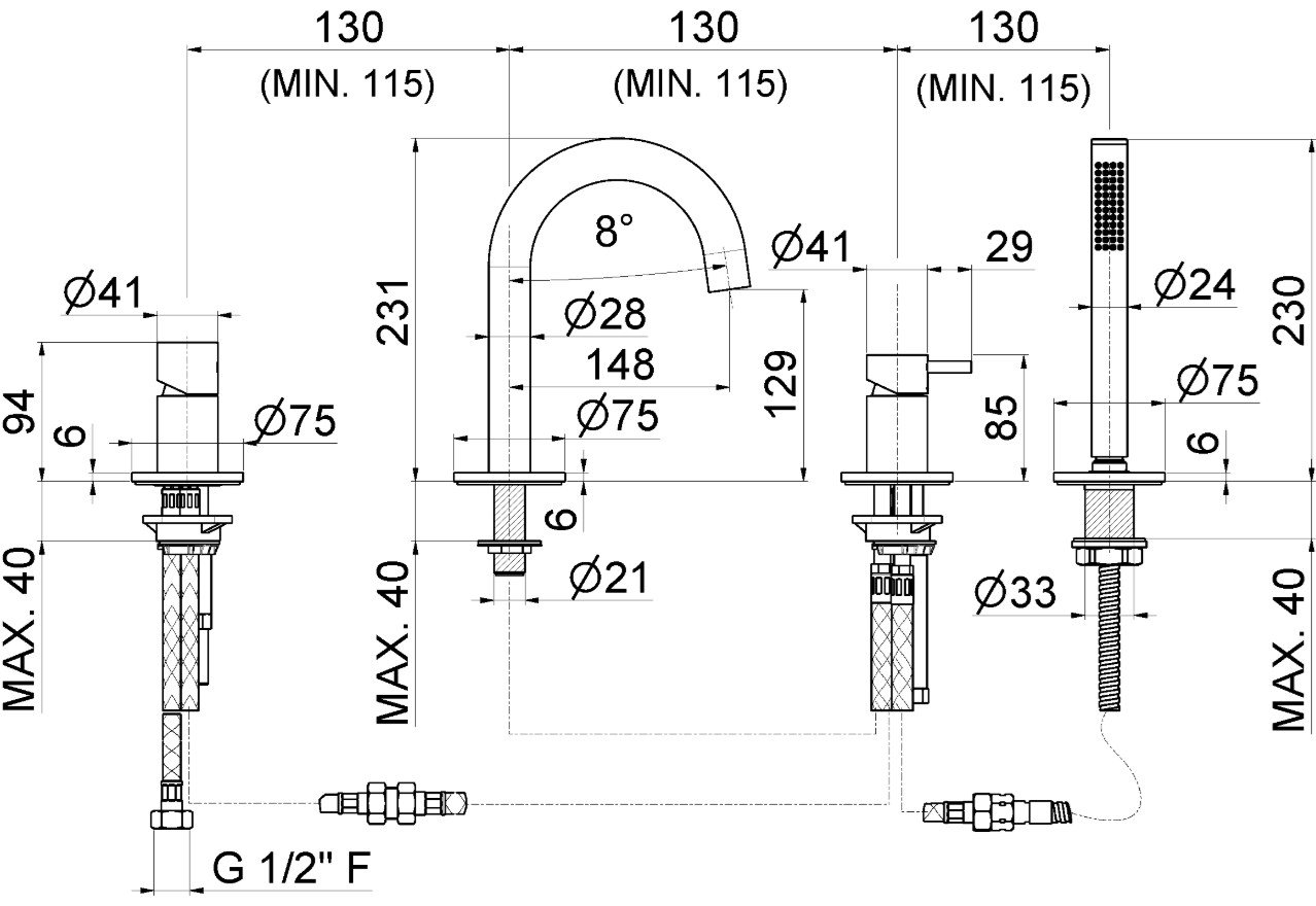 GRUPPO BORDO VASCA CON DEVIATORE VEMA VENY STEEL ACCIAIO V29150