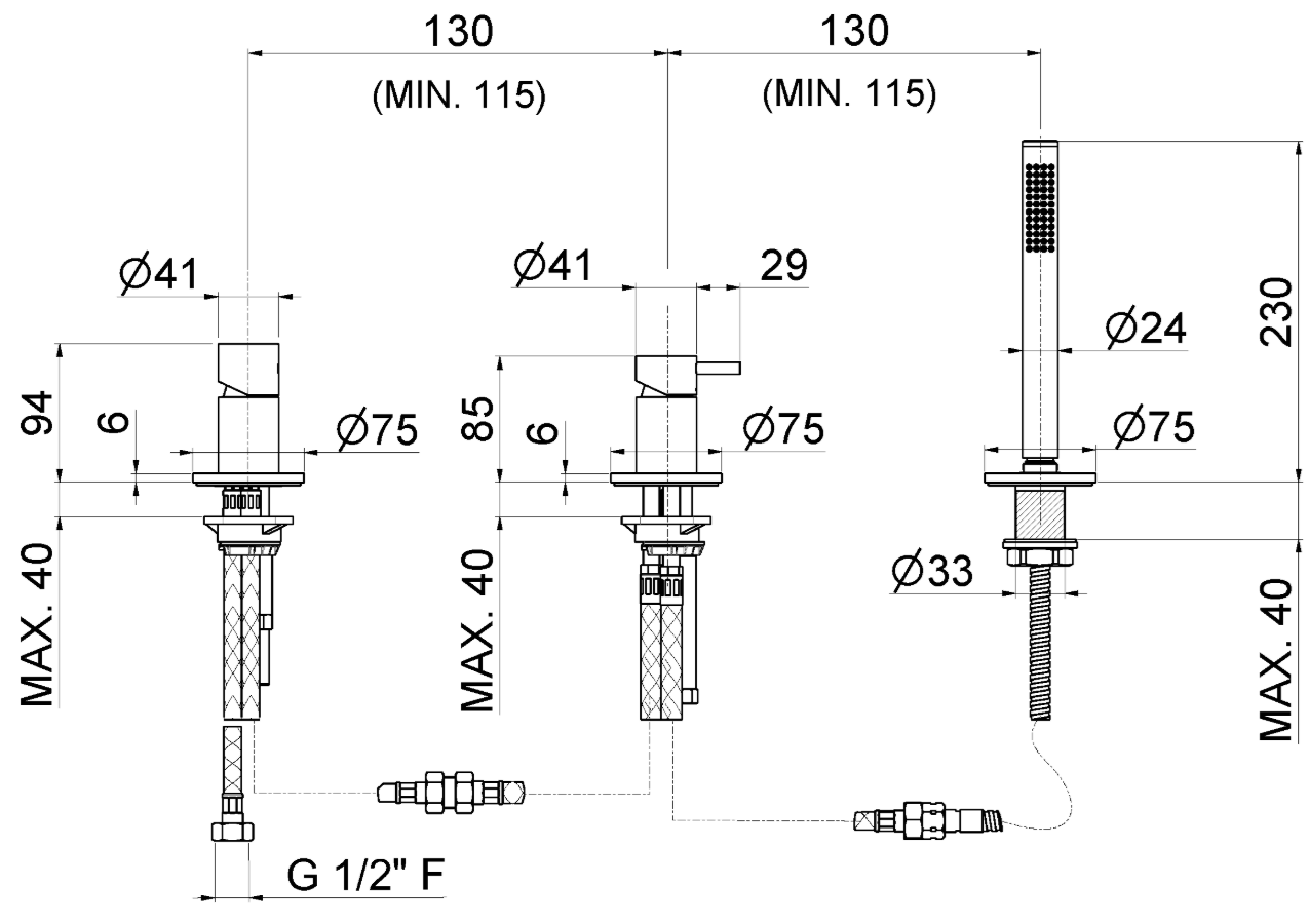 GRUPPO BORDO VASCA CON DEVIATORE VEMA VENY STEEL ACCIAIO V29160