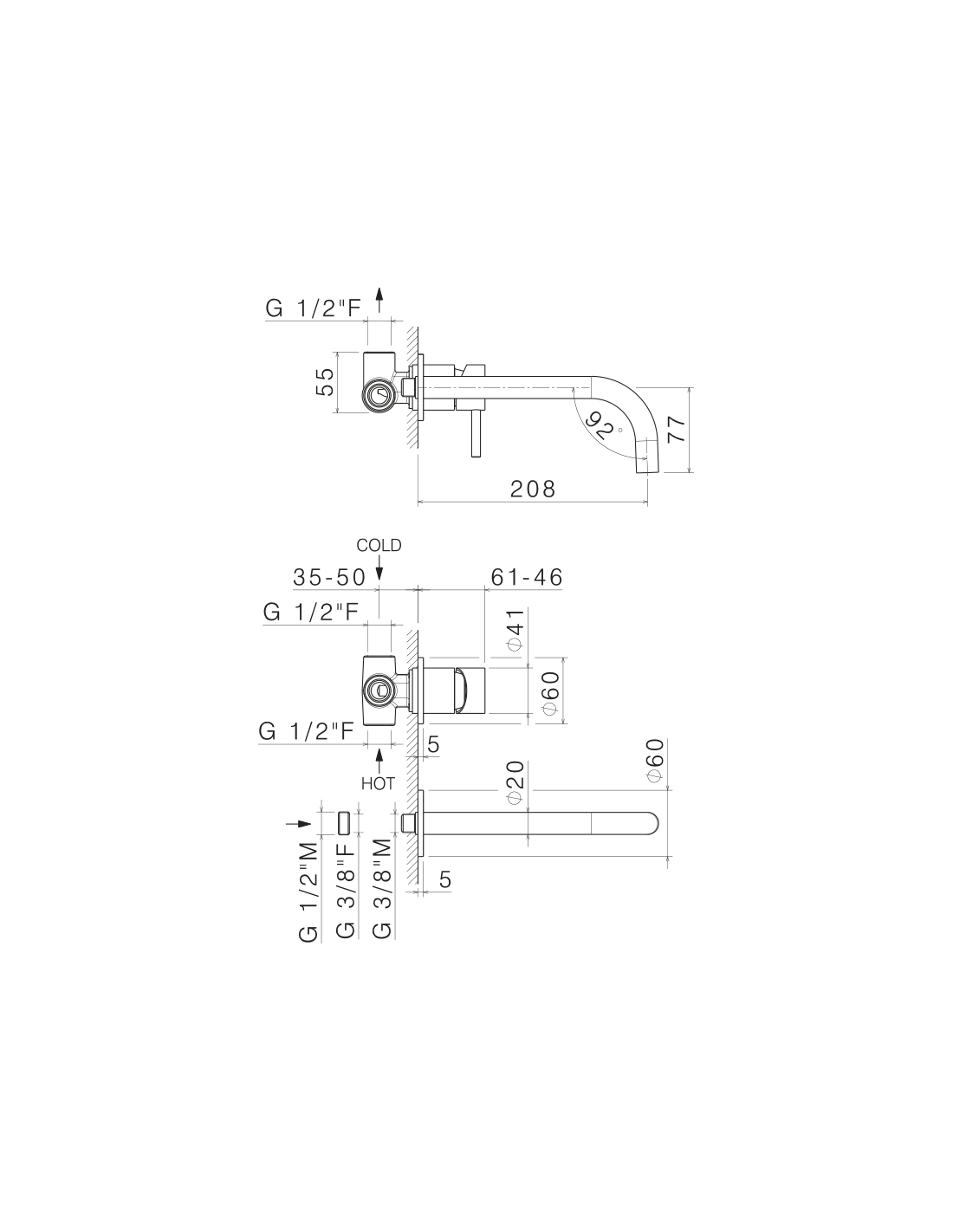 GRUPPO MISCELATORE MONOCOMANDO LAVABO A PARETE VEMA OTAGO ACCIAIO V17050