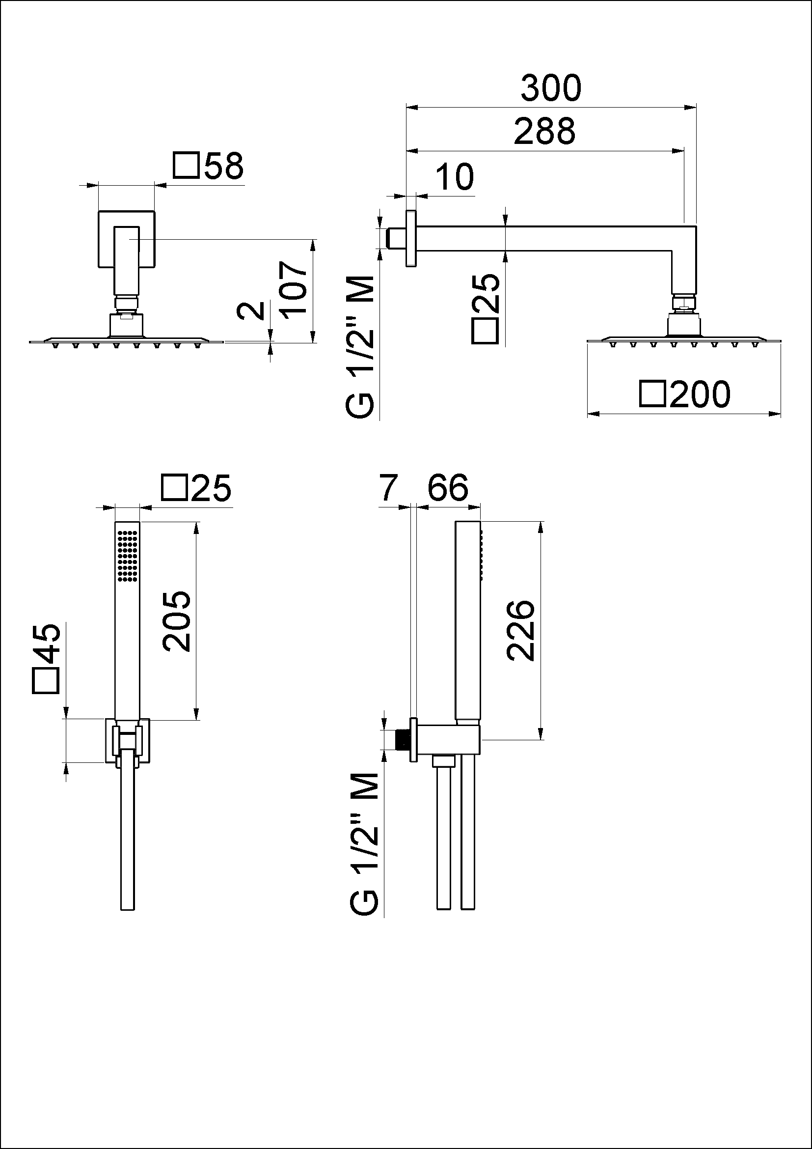 KIT DOCCIA QUADRO CON SOFFIONE 200x200 mm VEMA WELLNESS BRASS OTTONE V08137