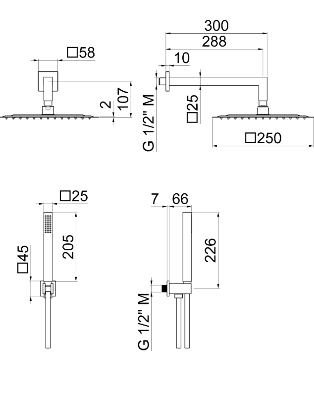 Kit doccia quadro completo di presa acqua con supporto,
