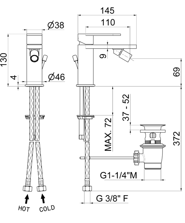 Miscelatore monocomando per bidet con scarico da 1”1/4.