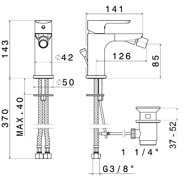 MISCELATORE MONOCOMANDO BIDET VEMA SLATE OTTONE V14070 CON SCARICO