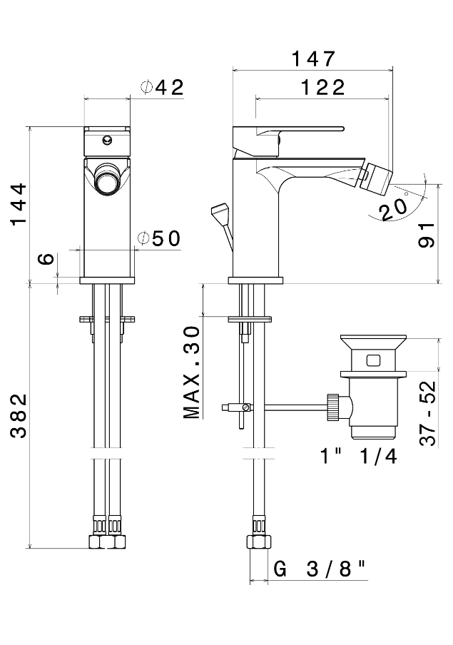 MISCELATORE MONOCOMANDO BIDET VEMA TIMEA OTTONE V16070 CON SCARICO