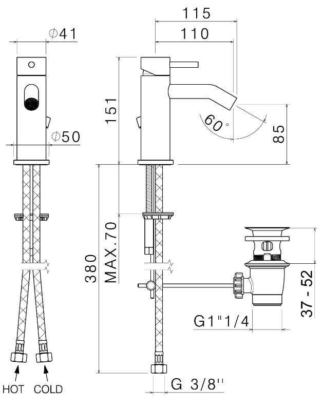 Miscelatore monocomando per bidet con scarico da 1”1/4.