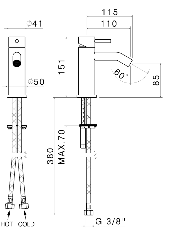 MISCELATORE MONOCOMANDO BIDET VEMA TIBER STEEL ACCIAIO V17071 SENZA SCARICO