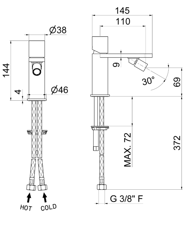 MISCELATORE MONOCOMANDO BIDET VEMA VENY STEEL ACCIAIO V29071 SENZA SCARICO