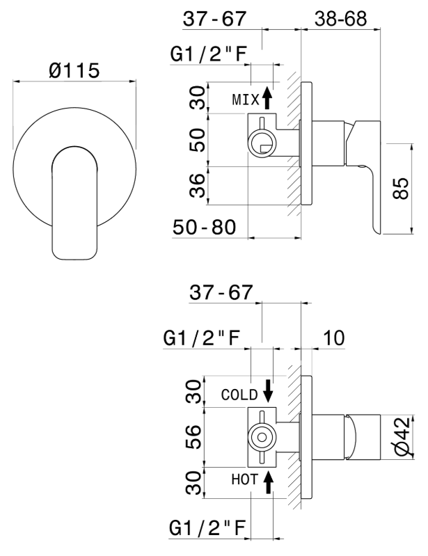 MISCELATORE MONOCOMANDO DOCCIA DA INCASSO VEMA SLATE OTTONE V14130