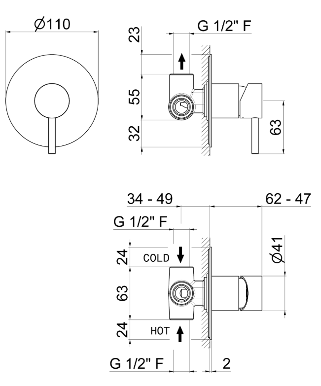 MISCELATORE MONOCOMANDO DOCCIA DA INCASSO VEMA TIBER STEEL ACCIAIO V17130
