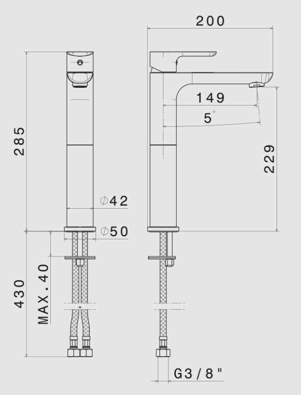 Miscelatore monocomando versione alta per lavabo da appoggio senza scarico.