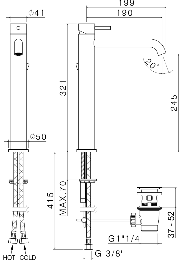 Miscelatore monocomando versione alta per lavabo