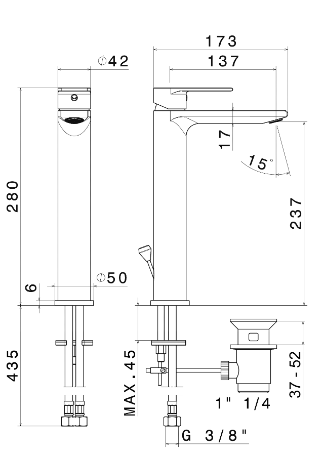 MISCELATORE MONOCOMANDO LAVABO ALTO VEMA TIMEA OTTONE V16021 SENZA SCARICO