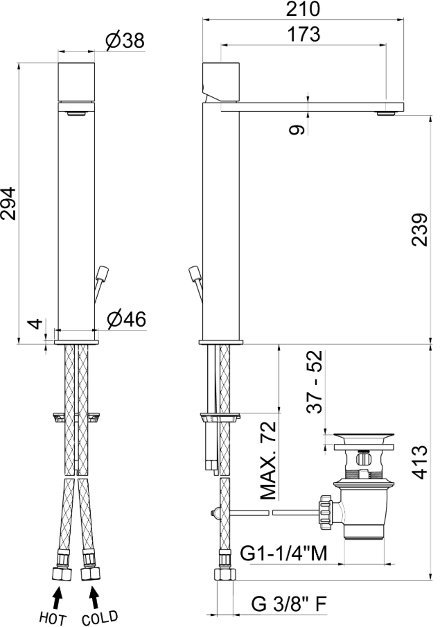 MISCELATORE MONOCOMANDO LAVABO ALTO VEMA VENY STEEL ACCIAIO V29020 CON SCARICO