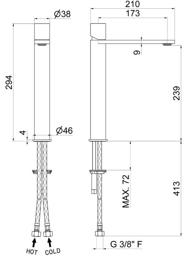 MISCELATORE MONOCOMANDO LAVABO ALTO VEMA VENY STEEL ACCIAIO V29021 SENZA SCARICO