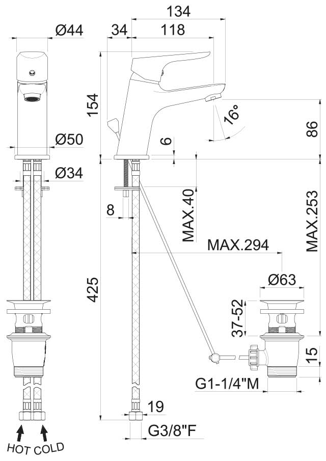 MISCELATORE MONOCOMANDO LAVABO VEMA INDO OTTONE V24010 CON SCARICO