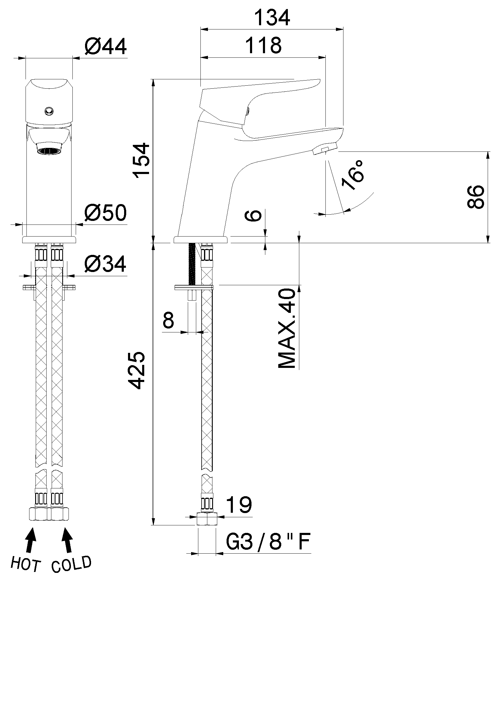 MISCELATORE MONOCOMANDO LAVABO VEMA INDO OTTONE V24011 SENZA SCARICO