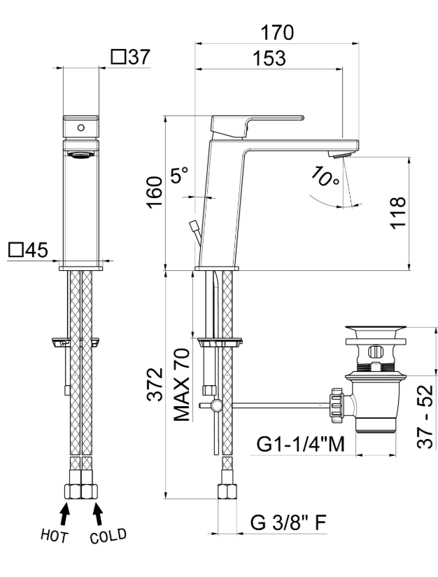 Miscelatore monocomando per lavabo con scarico da 1”1/4.
