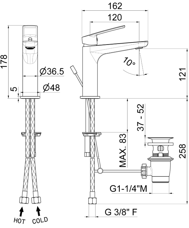 Miscelatore monocomando per lavabo con scarico da 1”1/4.