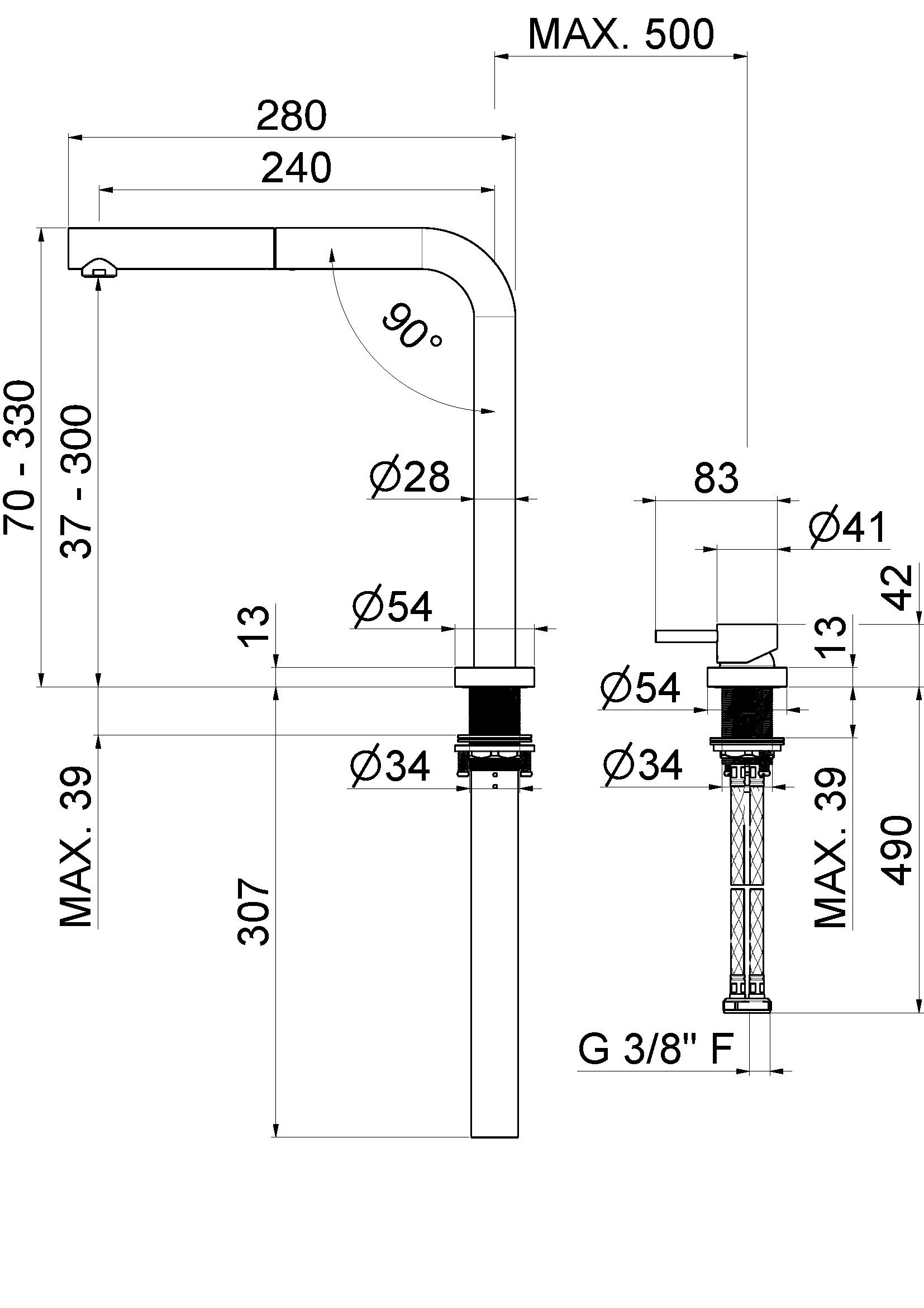 MISCELATORE MONOCOMANDO LAVELLO CANNA A SCOMPARSA VEMA REKA ACCIAIO V20026