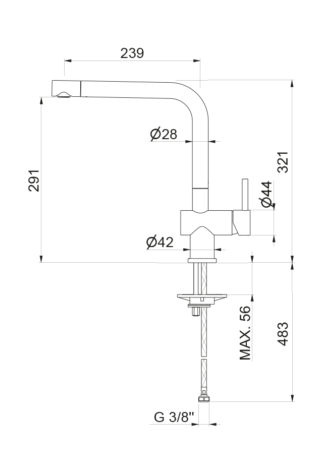 Miscelatore monocomando per lavello con canna “L” girevole.