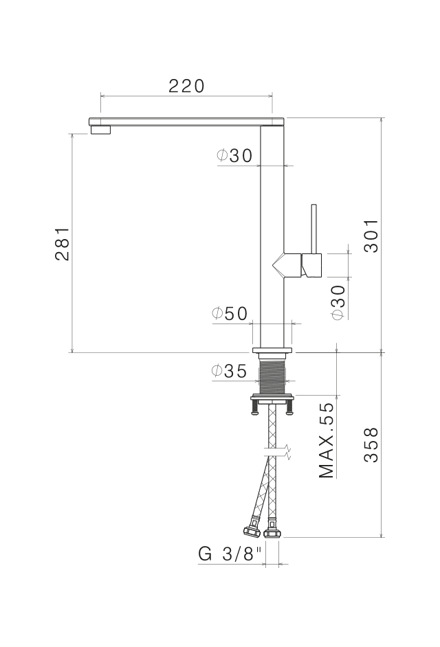 MISCELATORE MONOCOMANDO LAVELLO CANNA PIATTA VEMA TIBER STEEL KITCHEN ACCIAIO V20022
