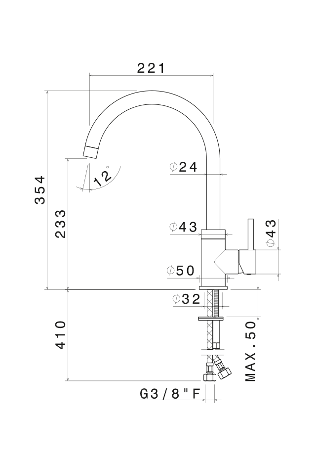 Miscelatore monocomando per lavello con canna tonda girevole.