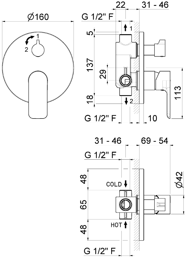 MISCELATORE MONOCOMANDO VASCA DA INCASSO VEMA SLATE OTTONE V14142