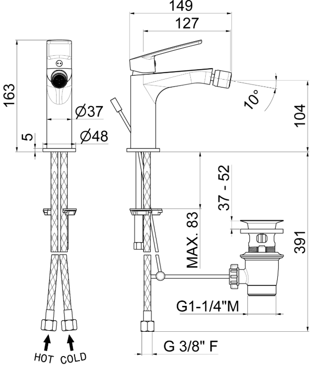 Miscelatore monocomando per bidet con scarico da 1”1/4.