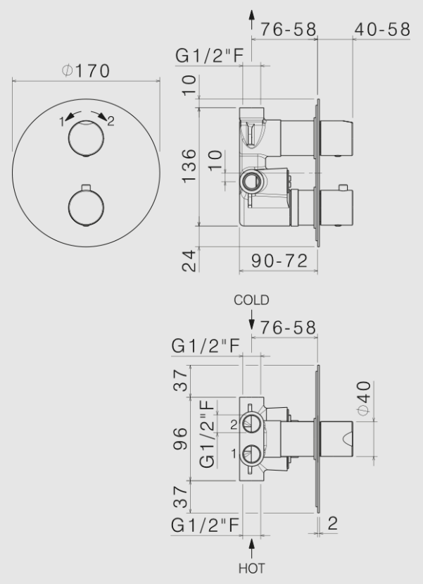 MISCELATORE TERMOSTATICO DOCCIA DA INCASSO VEMA WELLNESS STEEL ACCIAIO V08115