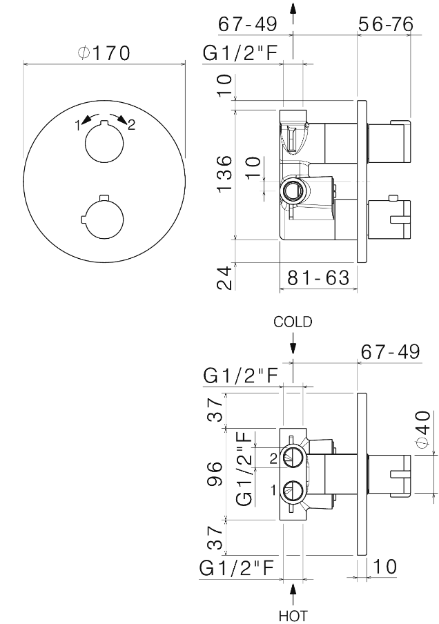 MISCELATORE TERMOSTATICO TONDO DOCCIA VEMA WELLNESS BRASS OTTONE V08110