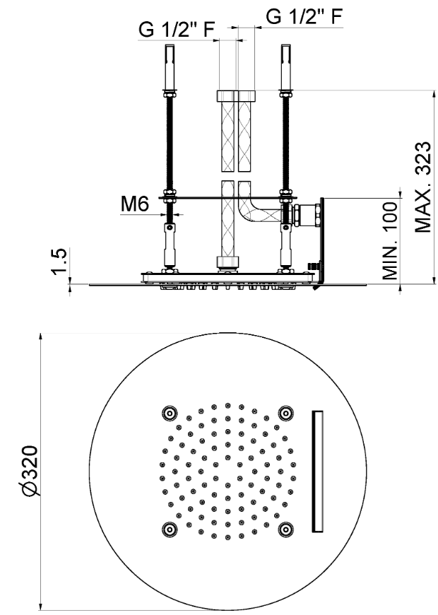 Soffione ultraslim tondo ad incasso Ø 320 mm.