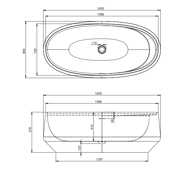 Vasca in Acrilico/Gel Coat Resina FORMA AQUAE IKI CENTRAL 165x80 cm